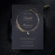 O Convite para Casamento Escuro Moody Waters é uma escolha bela e na moda para casais que amam o tema celeste, lua e estrelas, tema galáxias. Com um fundo negro profundo coberto com sotaques dourados (são efeitos digitais, não uma folha real!), ele tem um olhar sonhento e estrelado, complementado pela elegante caligrafia moderna. Este convite é elegante e moderno, fazer perfeito para dar o tom de um dia memorável e mágico de casamento.