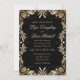 Um convite elegante para casamentos noturnos em qualquer estação do ano, este design apresenta uma borda de rico de ouro esfregada em volta do texto correspondente contra um fundo preto. Adicione seus detalhes de casamento em vez do texto de amostra.