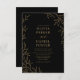 Junte a sofisticação do eterno e a conveniência moderna a este convite de casamento minimalista preto e ouro com um código QR embutido. Os convidados podem examinar instantaneamente para RSVP, acessar seu site de casamento ou visualizar detalhes do evento. O fundo negro profundo com elegante tipografia de ouro cria um olhar ousado e luxuoso, enquanto o layout limpo mantém seus detalhes de casamento claros e na moda. Perfeito para casamentos negros, formais ou modernos minimalistas.