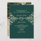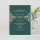 Convite para casamento Elegante, verde esmeralda e dourado, com sotaques florais, um monograma de corda e espaço para uma foto de casal no verso. Inclui um código de QR moderno para fácil acesso ao RSVP e ao site de casamento. Este convite 5x7 combina o design do eterno com a conveniência digital, fazer perfeito para casais que querem uma maneira clássica, mas inteligente em tecnologia, de convidar convidados. Envelope necessário (tamanho A7).