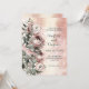 Um convite de casamento elegante, cor-de-rosa-pincelado e rosa, com ranúculo branco e rosa cor-de-rosa e buquê de eucalipto sobre um elegante fundo de rosa de ouro macio com talha de ouro rosa.
