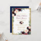 Convocação para Casamento Dourado da Elegante Watercolor Burgundy Marsala e Blue Floral - Roteiro Dourado e Borgonha, Blue Back