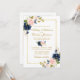 Convites Casamento Dourado Floral Azul, Cor-de-rosa-Blush