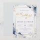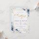 Convites Casamento Dourado Floral Azul Elegante Dusty