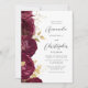 A borda esquerda deste elegante convite de casamento apresenta uma borda floral burguenta, aparada com folhas falsas de ouro e folhas reluzentes. O texto personalizável combina o script inspirado em vintage de cinzas de carvão e fontes sans serif em um fundo branco. O verso apresenta um design floral correspondente.