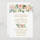 Convites Casamento Dourado Floral com Blush, Cor de Água E