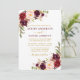 O Convite para Casamento Floral e Dourado da Moderna Elegante Watercolor Burgundy inclui rosas burguentos, rosas cor-de-rosa e verde botânico.