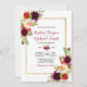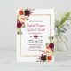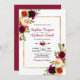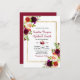 Moderno, Elegante, Borgonha Marsala Floral | Convite Dourado para Casamento por Frame e Tipografia. Elegante burgundy, marsala, rosas de aquarela cor rosa, design de casamento com folhas verdes em fundo branco, com uma camada de cor azul, com uma camada de cor azul. Possui um elegante design de tipografia manuscrita, noiva e nome de noivo. Excelente escolhido para queda ou casamentos no inverno. 3335