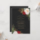 O belo buquê floral de aquarelas em vermelhos ricos e brancos inclui lindos peões, lírios, verde-luxuoso e hálito de bebê. O buquê é definido sobre um fundo preto de cor d'água rica, com uma canvas correspondente no verso. Este design termina com um simples roteiro elegante de caligrafia em ouro.