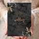Este elegante convite para o casamento apresenta buquês florais pretos saltados com folha verde de folha de ouro em dois cantos, numa imagem de fundo de uma aquarela preta. O texto dourado personalizável combina fontes serif, itálicas e manuscritas. O verso apresenta um design floral preto e dourado correspondente e um de aquarela.
