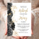 Este elegante convite de casamento mostra uma borda de flores pretas de aquarela com folhagem de folha de ouro falso em um fundo branco. Os nomes dos casais aparecem em um guião de escrita manual de cor dourada. Personalize o texto sans serif restante com os detalhes do seu casamento. A parte traseira da placa é preta e sólida.