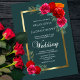 Convite para casamento floral vermelho e rosa elegante com borda de ouro e talhe.