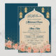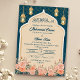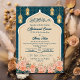 Convites Casamento Dourado Floral Muçulmano Teal Blue
