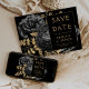Convites Casamento Dourado Floral Negro Escuro Salve a Data
