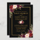 Convites Casamento Dourado Floral Negro Floral Burgundy