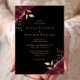 Convites Casamento Dourado Floral Negro Romântico Burgundy