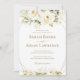 Imprima o seu convidado com um Dourado Convite para Casamento de Quadro Floral Rosa Branca com lindas flores marfim e folhas verdes. Personalize com suas informações ou clique em "Clique para personalizar mais" para editar estilos de fonte, tamanho e cores.