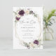Convites Casamento Dourado Floral Roxo-Verde Salva A Data