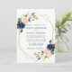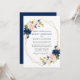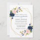 O Convite para Casamento Floral Clássico Azul e Blush Cor-de-Água Elegante Moderna inclui rosas rosa azuis e verde-verde. Quadro geométrico Dourado.