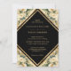 Convite floral de casamento elegante, preto, marfim e ouro, com detalhes de casamento, dentro de uma estrutura geométrica de ouro e adornado com rosas de marfim/creme e confete de ouro. Itens correspondentes disponíveis.