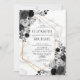 Convites Casamento Dourado Geométrico Marble Floral Preto B