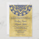 O convite de casamento Elegante, azul e dourado, da Índia mostra um belo e delicado design de mandala. Personalizar com os detalhes do evento. Mandala em azul, frente em ouro e de volta em azul.