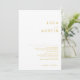 Este convite Dourado moderno e minimalista do Font é perfeito para o seu casamento clássico do Boho. Seu design abstrato simples, único, acompanhado de um roteiro mínimo contemporâneo e de uma paleta dourada dá a este produto uma sensação de luxo formal elegante enquanto permanece simplista, a boêmia chica. Mantenha-o como está ou escolha personalizá-lo com trabalho de arte ou gráficos de sua escolha. Você também pode procurar outros produtos dentro desta coleção para juntar todo o seu casamento!