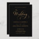 Chamadas de Casamento Dourado e Preto Duplo Lado do Código QR do Script de Caligrafia Elegante... Nosso elegante ouro no convite de casamento preto apresenta um roteiro de caligrafia suave combinado com uma bela tipografia serif e sans serif para definir um tom romântico para seus núpcias futuros. A parte traseira do convite também exibe o código QR do seu site de casamento, assim como o próprio URL do site, permitindo que seus convidados RSVP online sejam facilmente visualizados e todos os detalhes normalmente enviados em um pacote de casamento. Este convite de casamento de dois lados foi projetado para ser elegante e economizador de tempo... assim como amigo de árvores. O exemplo de gráfico de código QR e todo texto de exemplo (além dos elementos de caligrafia gráfica) pode ser facilmente revisado com suas próprias informações sobre o modelo de personalização.