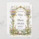Projetado para casais sonhando com uma celebração romântica de flor selvagem, este modelo de convite para casamento captura a beleza macia e caprichosa do primavera no cheio. Um arco de ouro enquadra seus detalhes, enquanto flores silvestres em tons de aquarela, cor-de-rosa-pincelada, creme-borboleta e branco são organizadas elegantemente ao longo da borda. Sinta-se livre para adicionar seus detalhes e personalizá-los de acordo com seu gosto. Sinta-se à vontade para sair se precisar de modelos/cartões de coordenação adicionais.