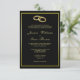 Bonito convite de casamento preto e dourado com duas/2 sofisticadas alianças/bandas de casamento douradas. Plano de fundo preto simples com uma borda de gradiente ouro brilhante para ocultar os detalhes do evento. Todo o texto, fonte e cor e plano de fundo são totalmente personalizáveis para atender às suas necessidades. Se você quiser ajudar a personalizar seu produto, por favor, entre em contato comigo através da minha loja e eu ficarei muito feliz em ajudá-lo. Bonito design de casamento adequado para qualquer estação.