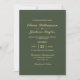 Um verde elegante com convite para casamento de texto dourado.