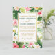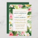 O Convite para o Casamento de Calor Tropical de Molercola Aquática Moderna inclui flores tropicais cor-de-rosa, flores brancas, flores amarelas, palmeiras e verde botânico. Dourado quadro.