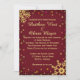 Um estilo moderno com os pontos do bokeh, estrelas do ouro e flocos de neve e watermarks coloridos do redemoinho. A cor do fundo é um vermelho festivo do arando. Personalize este convite para seu casamento do feriado do Natal. A parte traseira tem o espaço se você precisa de fornecer mais informação. Podem igualmente ser personalizados para outras ocasiões do casamento tais como um chá de panela, um noivado ou uma festa de solteira ou um jantar de ensaio.