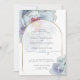 CONVITE DE Casamento | ajustados de texto moderno gentilmente dentro este belo quadro de arco branco de borda dourada que mostra a flor de pedras de fantasia subjacente em azul empoeirado e lilás e borrado em arte dourada - original © por WhimsicalArtwork™.
