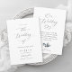 Adicione um toque romântico à sua papelaria de casamento com este elegante convite à água azul empoeirado com trabalho de arte floral mole no fundo. A frente destaca seus nomes, data e detalhes do casamento na tipografia do eterno, enquanto o verso apresenta flores de aquarela delicadas que combinam com o design geral. Perfeito para casamentos clássicos, rústicos, costeiros ou jardineiros, este convite de dois lados combina beleza e praticidade. Totalmente personalizável para se adequar às suas cores e texto.