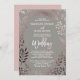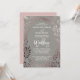 Este elegante cartão de casamento e convite de recepção, com quadro de folha de ouro rosa, é perfeito para um casamento clássico. O design apresenta uma impressionante armação rosa-rosa-rosada num fundo de cinza escuro e é emparelhado com uma fonte encantadora e cursiva. O convite inclui um espaço para detalhes de recepção. Nota: Este design não apresenta folha de ouro rosa real. É um gráfico de alta qualidade feito para se parecer com ouro rosa brilhante.