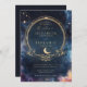 O Convite Azul à Noite das Águas Celestiais é uma escolha bela e na moda para casais que amam o tema celeste, lua e estrelas, tema galáxias. Com um fundo azul profundo coberto com sotaques dourados (são efeitos digitais, não papel real!), ele tem um olhar sonhador e estrelado à noite. Este convite é elegante e moderno, fazer perfeito para dar o tom de um dia memorável e mágico de casamento.