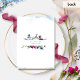Um convite elegante e único para o casamento, com os detalhes do seu casamento, enquadrados por uma fronteira floral atraente no topo e delicadas manchas azuis de aquarela com detalhes florais no fundo. Flores e folhagem em amoras e tons azuis, numa mistura harmoniosa de tonalidades azuis, marinhos, burgundy, ameixa, roxo e amora e framboesa. Elementos modernos de caligrafia escrita à mão. Belo dorso com manchas de aquarela azul-macia nas bordas e delicado detalhe floral central com nomes de casais. Parte da nossa coleção "Berry, Blue and Burgundy Floral" com uma variedade de produtos de coordenação disponíveis.