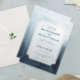 Um convite de casamento elegante e azul de aquarela que é excelente para qualquer época do ano. Um design moderno e clássico.