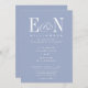 Casamento Elegante Azul e Branco. Texto branco elegante sobre fundo azul empoeirado. Apresenta uma linda noiva personalizável e iniciais de monograma de noivos com ampersand. Personalize com as iniciais do Monograma e o texto do casamento. Convidamos você a visitar nossa loja Zazzle, GJ Design Co, para ver produtos correspondentes