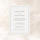 Convite de casamento elegante com um design simples e clássico com fontes serif tradicionais e uma fronteira em torno de seus detalhes de evento.