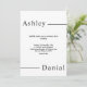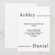 Este elegante convite de casamento preto e branco é perfeito para um casamento moderno. o simples design apresenta uma caligrafia negra elegante em um fundo branco.
