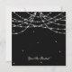 Design elegante de casamento "Salve a Data" com efeito de Corda Brilhante Preta com céu noturno e estrelas em fundo preto, e nomes e data personalizados. Impressione sua família e amigos com este design moderno e sofisticado. Totalmente personalizável! Fácil de usar e personalizar. Compre hoje!