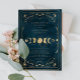 Convite para Casamento Elegante Celestial Dourado de marinho Azul e Faux