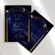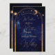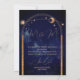Uma lua um sol e estrelas são a base desse tema celeste design. acima das palavras sobre fundo celeste. Um tema moderno para um convite de casamento na moda da noite com as suas informações de recepção no verso. Altere facilmente as informações para o seu próprio design personalizado. A partir de uma gama de papéis de carta de Casamento personalizados correspondentes dos Designs Finos de Chessie.