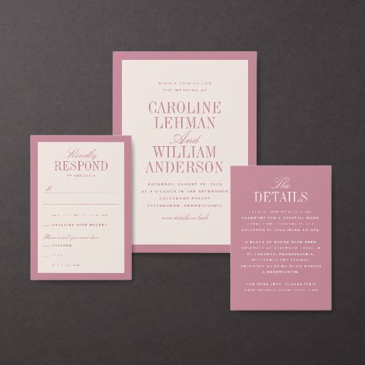 Convide amigos e família para o seu casamento com este convite clássico e elegante em cor rosa e creme.