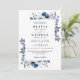 Este convite de casamento floral azul marinho e branco pode ser personalizado com suas informações em tipografia moderna com o código QR do site do seu casamento no verso. Projetado por Thisisnotme©