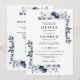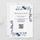 Convites Casamento Elegante Código QR Floral Azul Marinho e