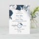 Marinho elegante, flores azuis e brancas incrível convite para casamento botânico