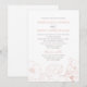 Um convite de casamento delicado com ilustrações de hibiscos em rosa suave e dourado rosa ao longo da borda inferior, com destaques em caligrafia cinza sobre fundo branco. O design floral sutil cria uma sensação arejada e refinada com um toque romântico. Todo o texto é totalmente personalizável para os detalhes da sua cerimônia e celebração.